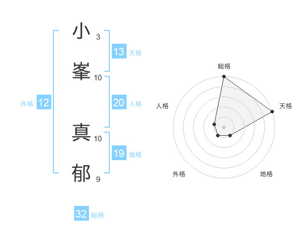 小峯 真郁さんを姓名の画数から五運を鑑定