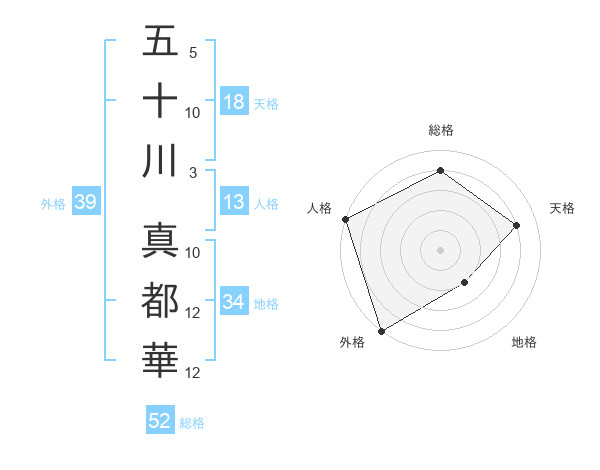 五十川 真都華さんを姓名の画数から五運を鑑定