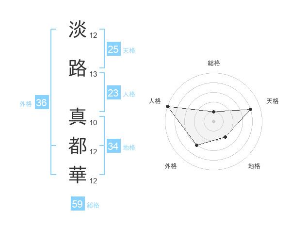 淡路 真都華さんの総格は59画の1点!