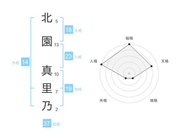 北園 真里乃さんの総格は37画の5点!