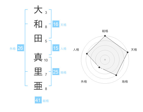 大和田 真里亜さんを姓名の画数から五運を鑑定