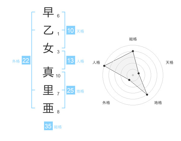 早乙女 真里亜さんの総格は35画の4点!