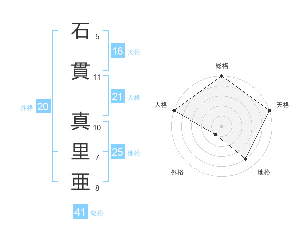 石貫 真里亜さんの外格は20画の1点!