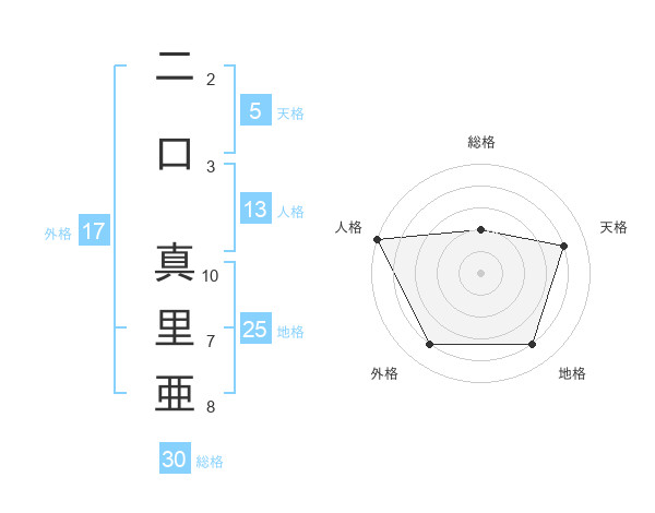 二口 真里亜さんを姓名の画数から五運を鑑定