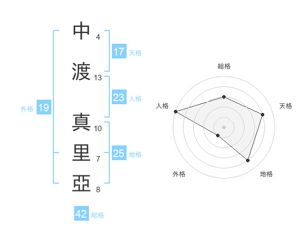 中渡 真里亞さんの総格は42画の3点