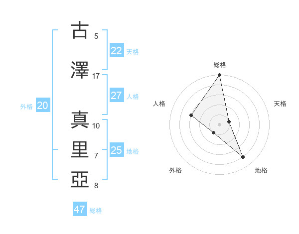 古澤 真里亞さんを姓名の画数から五運を鑑定