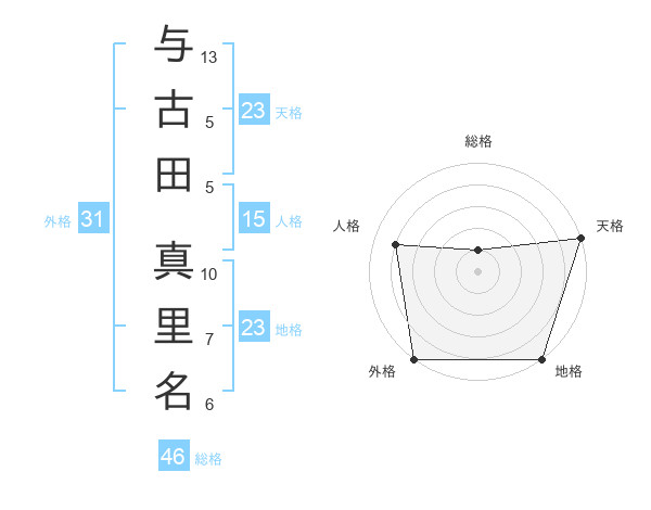 与古田 真里名さんを姓名の画数から五運を鑑定