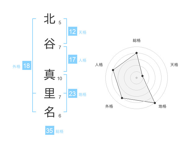 北谷 真里名さんを姓名の画数から五運を鑑定