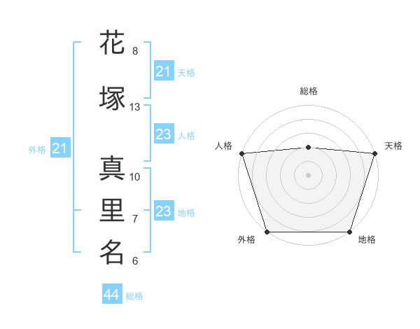 花塚 真里名さんを姓名の画数から五運を鑑定