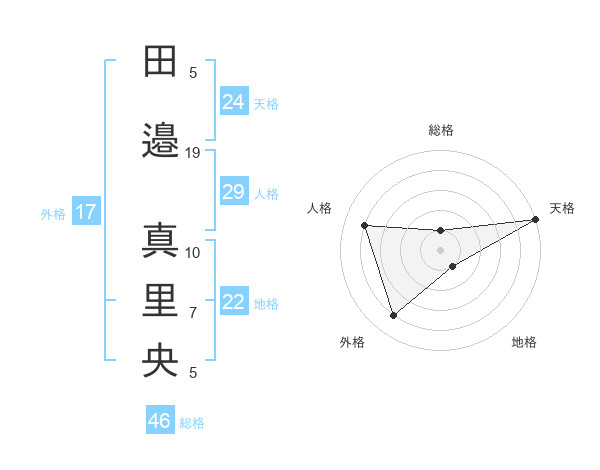 田邉 真里央さんの天格は24画の5点!