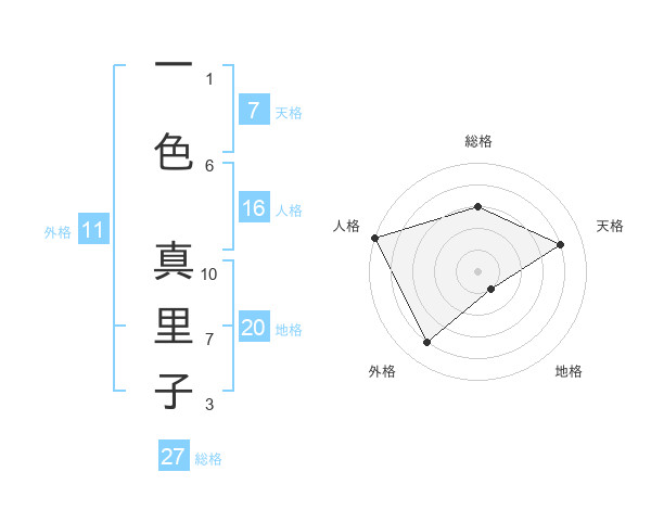 一色 真里子さんの天格は7画の4点!