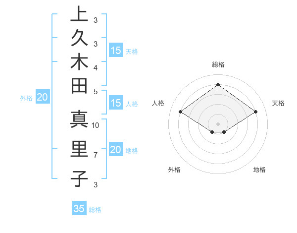 上久木田 真里子さんの天格は15画の4点!
