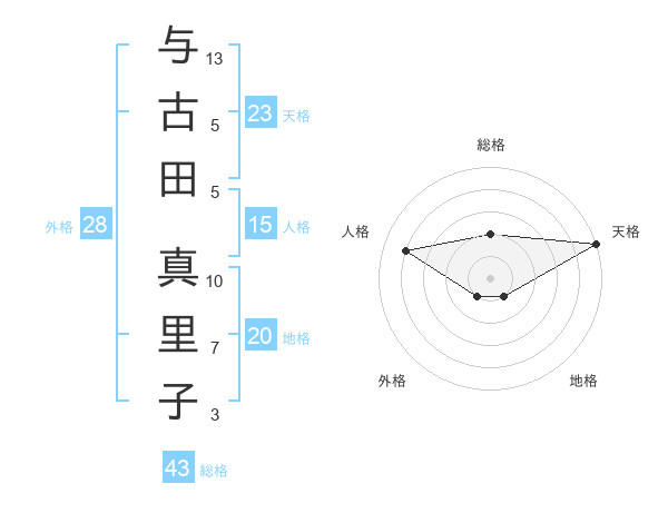 与古田 真里子さんを姓名の画数から五運を鑑定