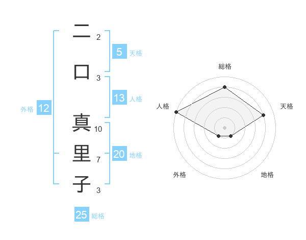 二口 真里子さんの天格は5画の4点!