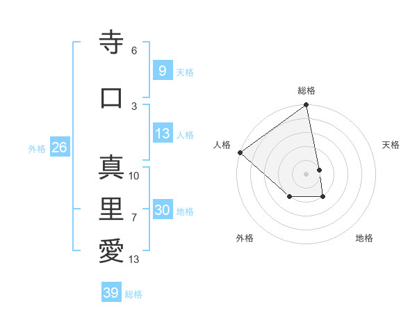 寺口 真里愛さんの総格は39画の5点!