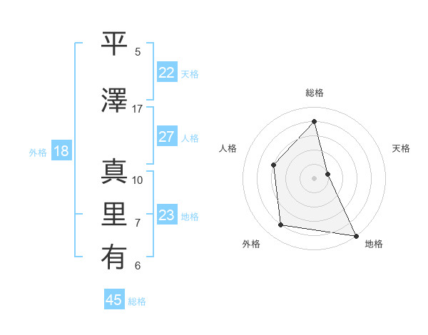 平澤 真里有さんの天格は22画の1点!