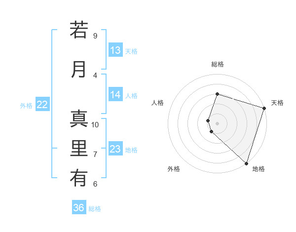 若月 真里有さんの天格は13画の5点!