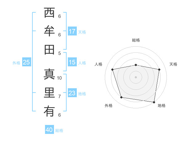 西牟田 真里有さんを姓名の画数から五運を鑑定