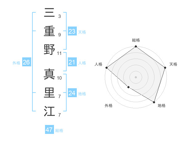 三重野 真里江さんを姓名の画数から五運を鑑定