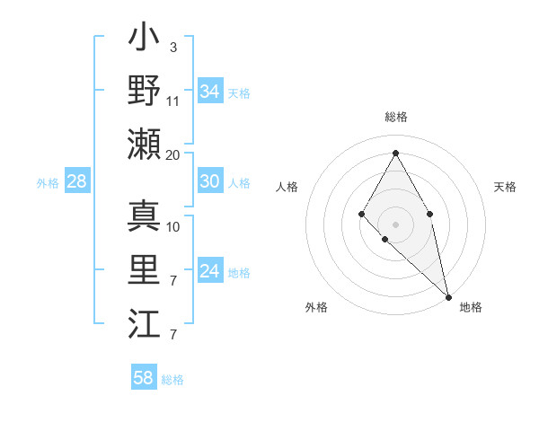 小野瀬 真里江さんを姓名の画数から五運を鑑定