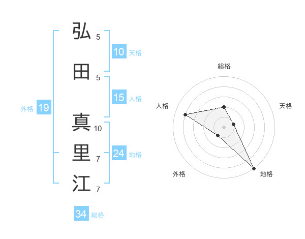 弘田 真里江さんを姓名の画数から五運を鑑定
