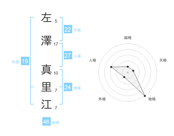 左澤 真里江さんを姓名の画数から五運を鑑定