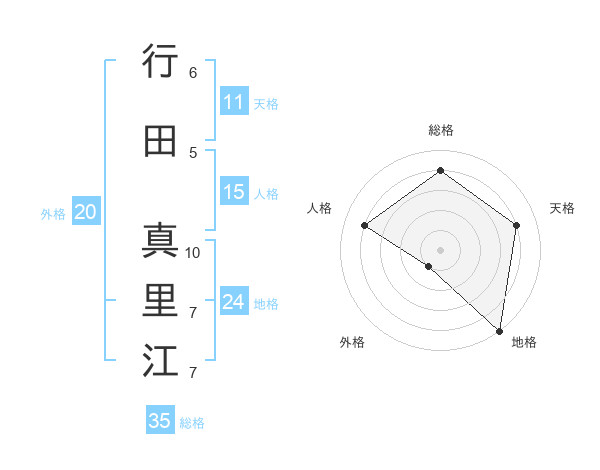 行田 真里江さんの総格は35画の4点!