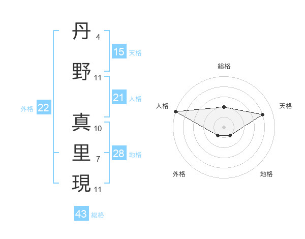 丹野 真里現さんを姓名の画数から五運を鑑定