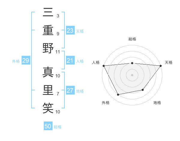 三重野 真里笑さんの総格は50画の2点!