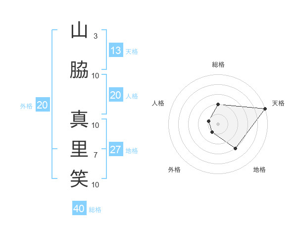 山脇 真里笑さんの天格は13画の5点!