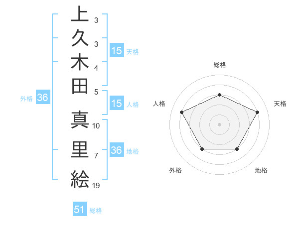 上久木田 真里絵さんを姓名の画数から五運を鑑定