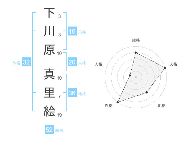 下川原 真里絵さんを姓名の画数から五運を鑑定