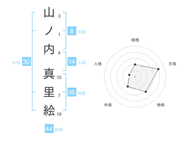 山ノ内 真里絵さんの天格は8画の4点!