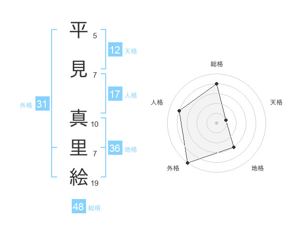 平見 真里絵さんの外格は31画の5点!