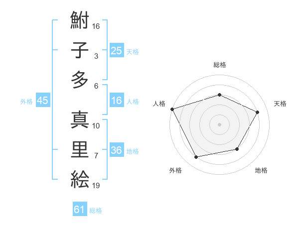 鮒子多 真里絵さんを姓名の画数から五運を鑑定