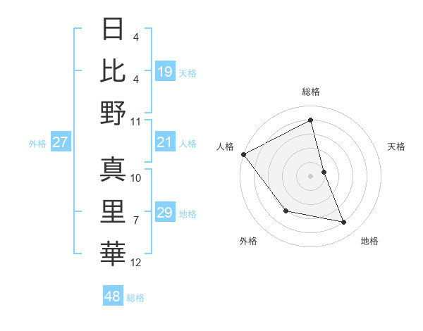 日比野 真里華さんを姓名の画数から五運を鑑定