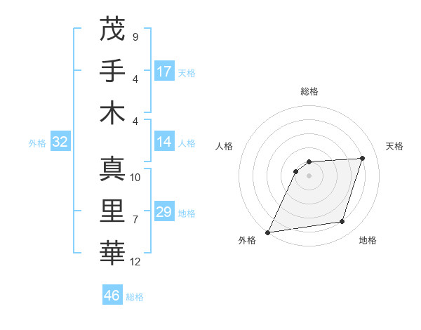茂手木 真里華さんを姓名の画数から五運を鑑定