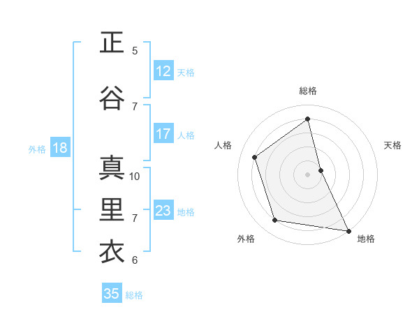 正谷 真里衣さんの天格は12画の1点!