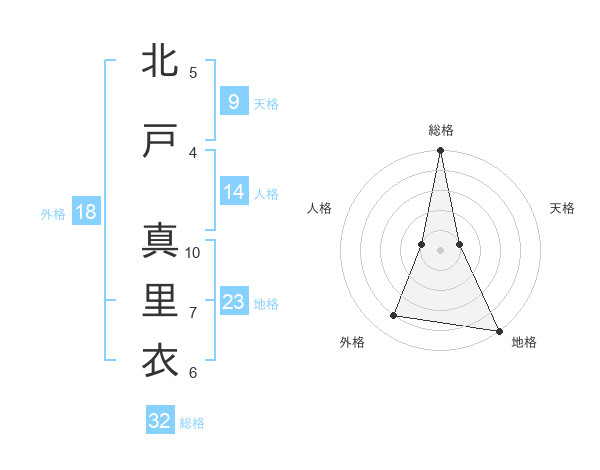 北戸 真里衣さんを姓名の画数から五運を鑑定