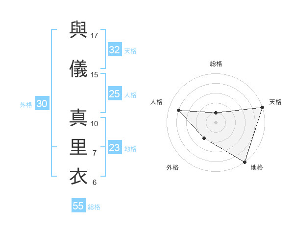 與儀 真里衣さんの総格は55画の1点!