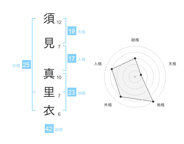 須見 真里衣さんの地格は23画の5点!