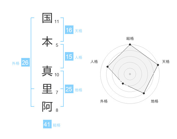 国本 真里阿さんを姓名の画数から五運を鑑定