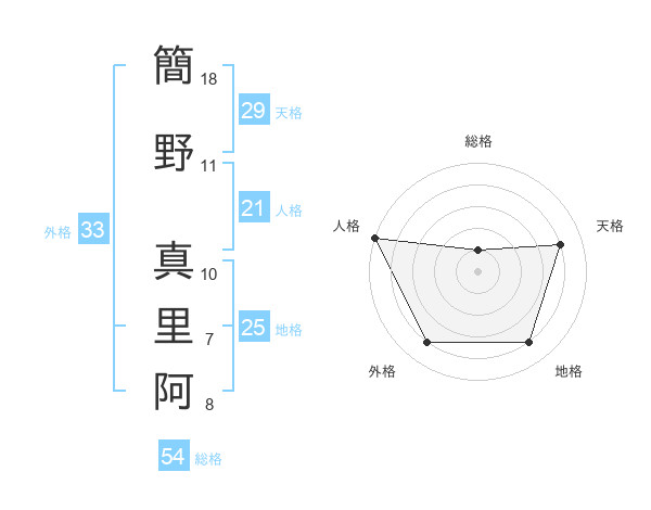 簡野 真里阿さんを姓名の画数から五運を鑑定