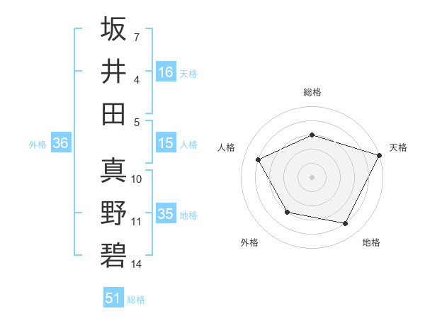 坂井田 真野碧さんを姓名の画数から五運を鑑定