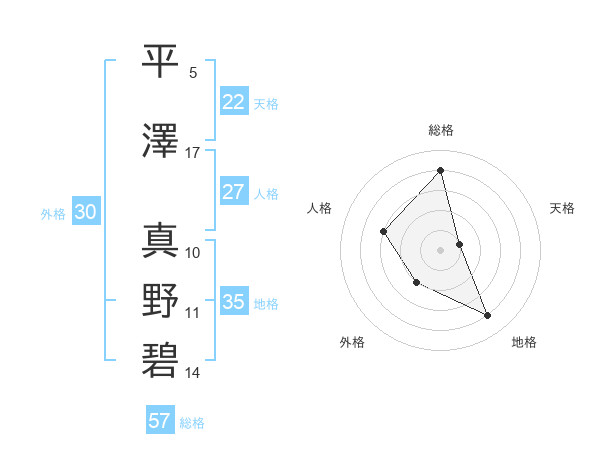 平澤 真野碧さんを姓名の画数から五運を鑑定