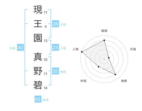 現王園 真野碧さんの人格は23画の5点!