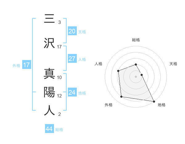 三沢 真陽人さんを姓名の画数から五運を鑑定