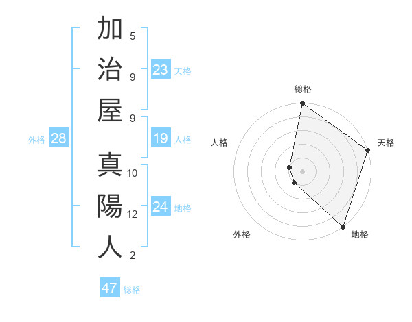 加治屋 真陽人さんを姓名の画数から五運を鑑定
