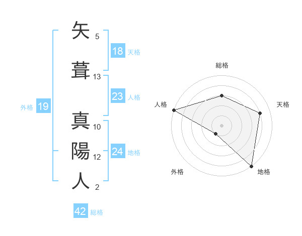 矢葺 真陽人さんを姓名の画数から五運を鑑定