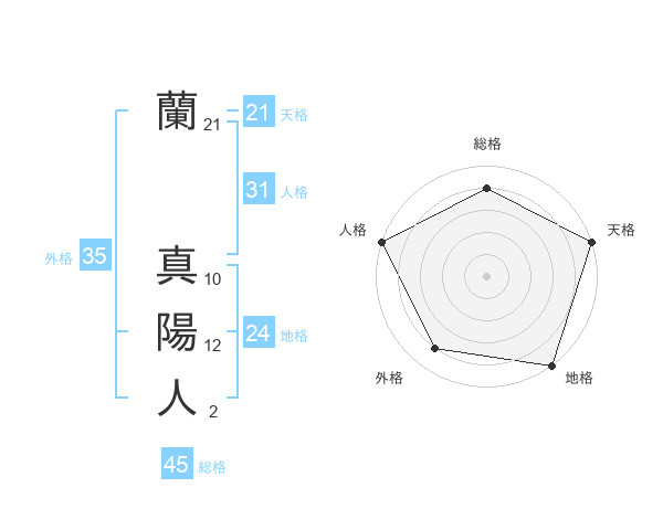 蘭 真陽人さんの総格は45画の4点!